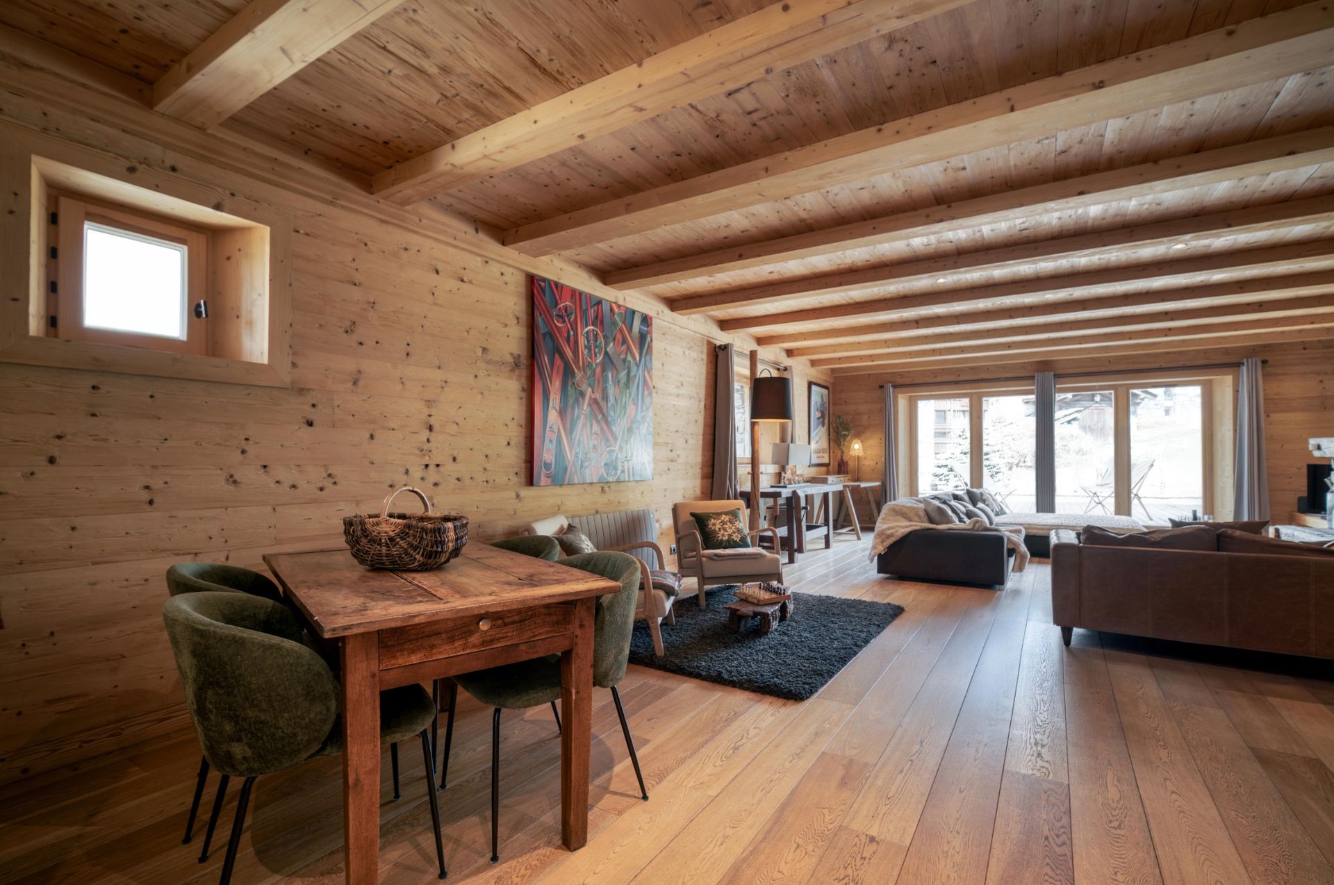 This 350m² chalet combines five bedrooms in the main building with a self-contained ground-floor apartment offering two extra bedrooms and a private lounge. All guests come together for catered meals in the main chalet, ensuring a sociable and welcoming dining experience.
