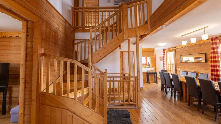 Sleeping up to 14 guests across 7 bedrooms, Chalet Diane is particularly well suited to family and group ski holidays in Alpe d’Huez. The layout includes two separate living areas, ideal for groups travelling with children or those wanting extra space to relax independently.